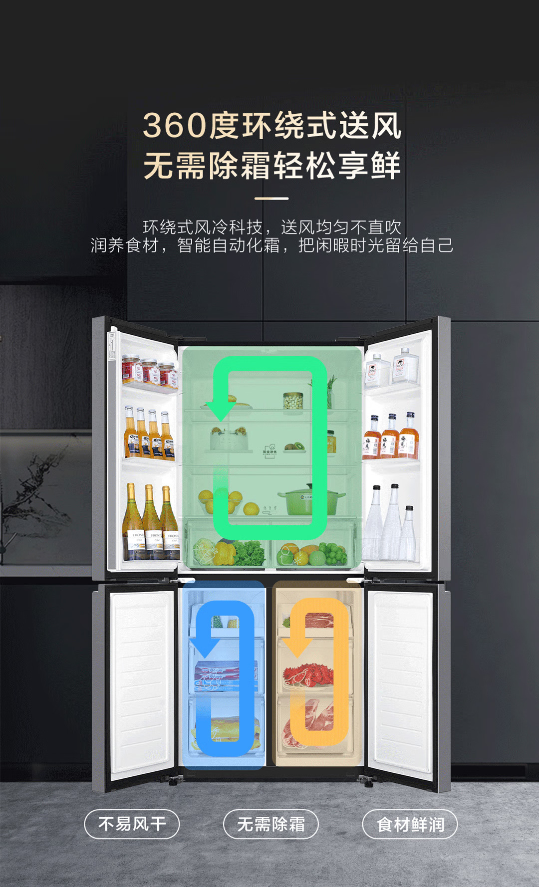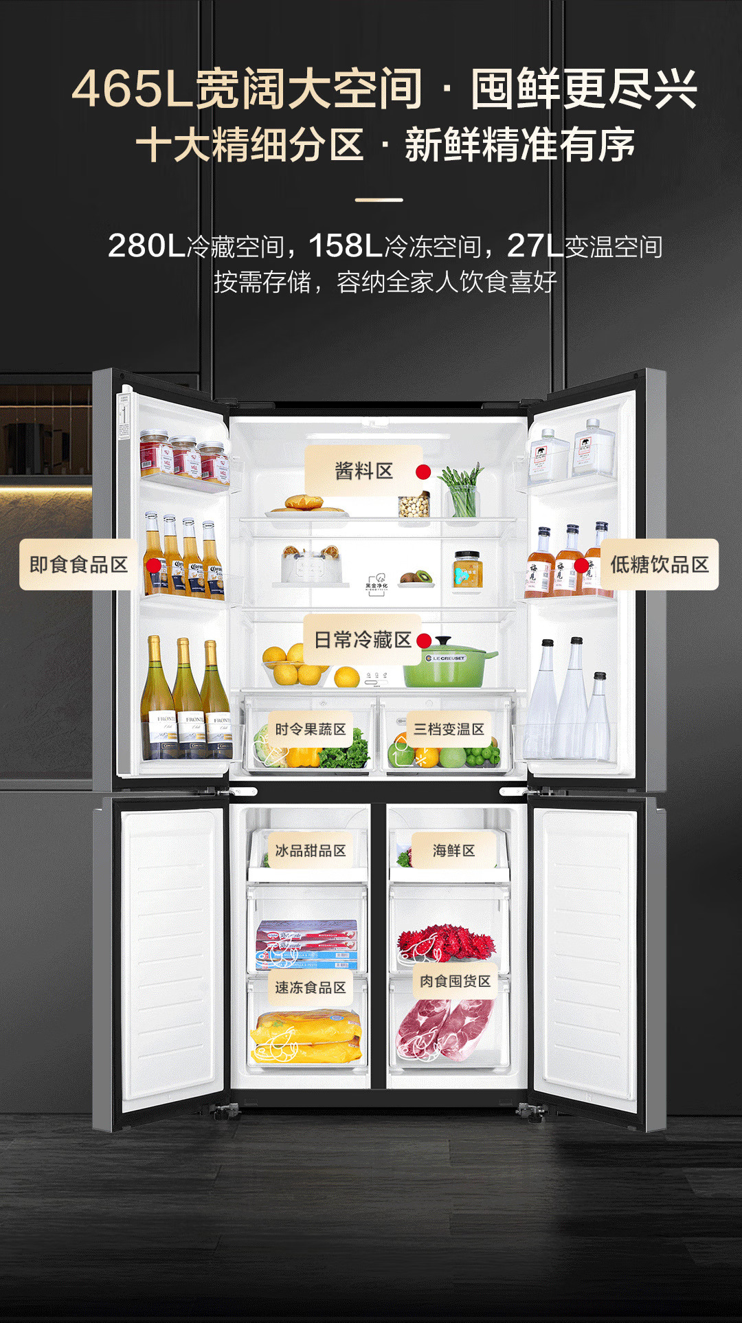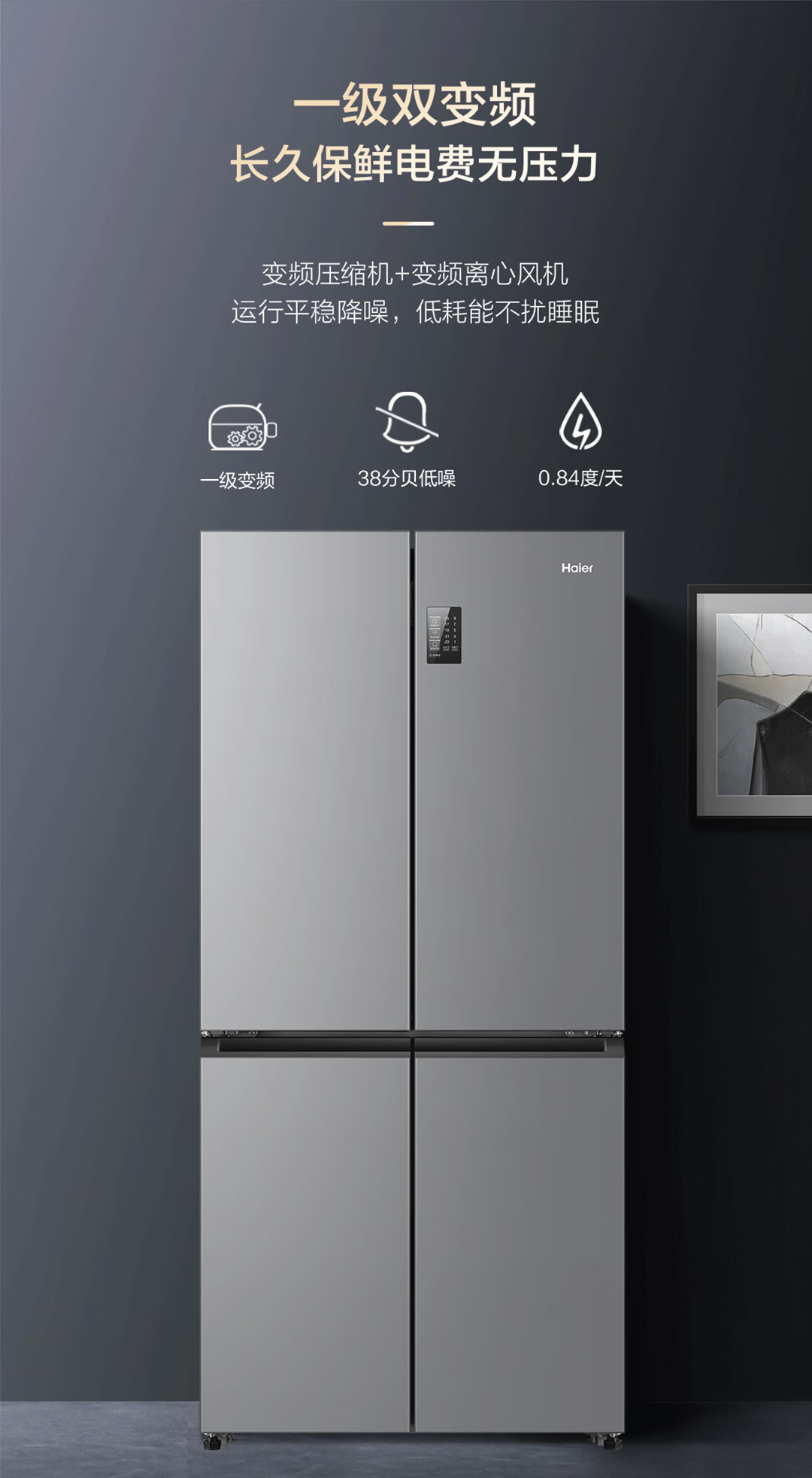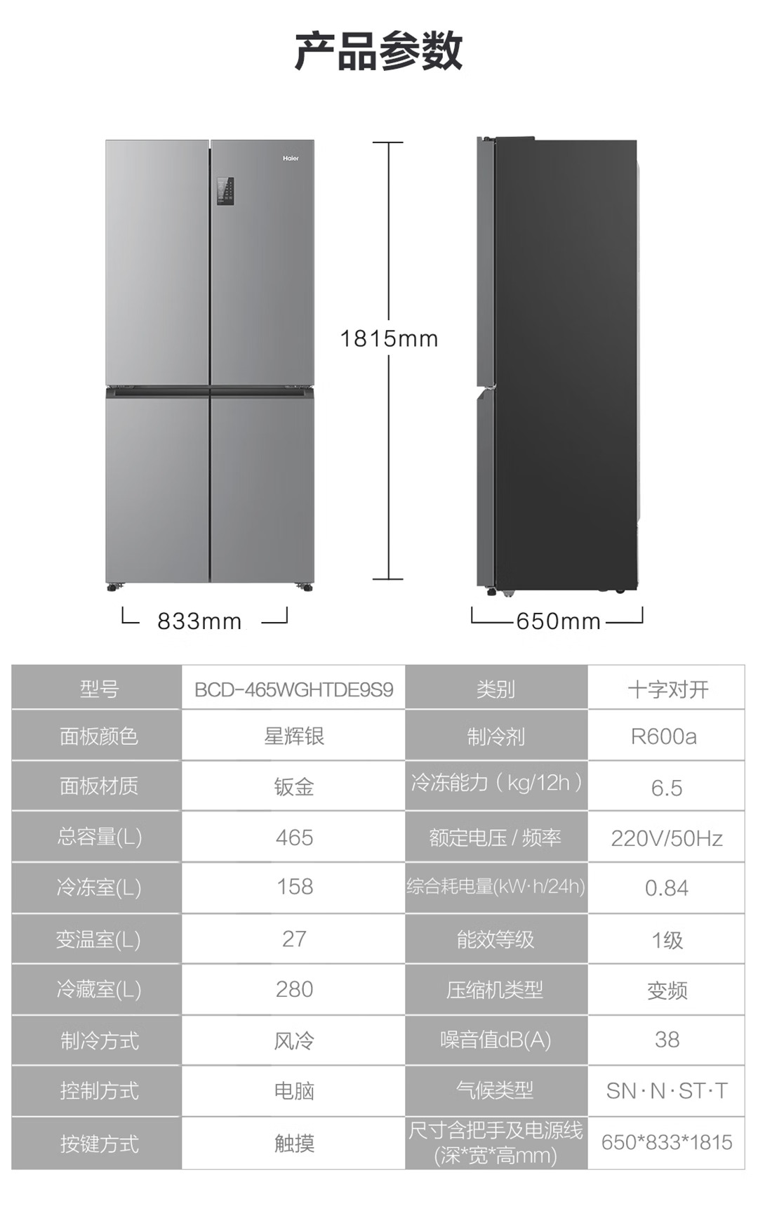 海尔(Haier)465升十字对开四开门电冰箱家用风冷无霜一级能效变频超薄BCD-465WGHTDE9S9家电国家补贴20%