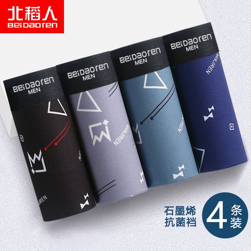 北稻人男士内裤男生石墨烯抗菌透气新款平角短裤四角宽松男裤头