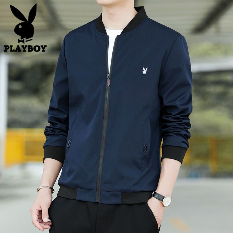 花花公子男士外套春秋褂子夹克时尚男装中青年百搭休闲夹克衫上衣