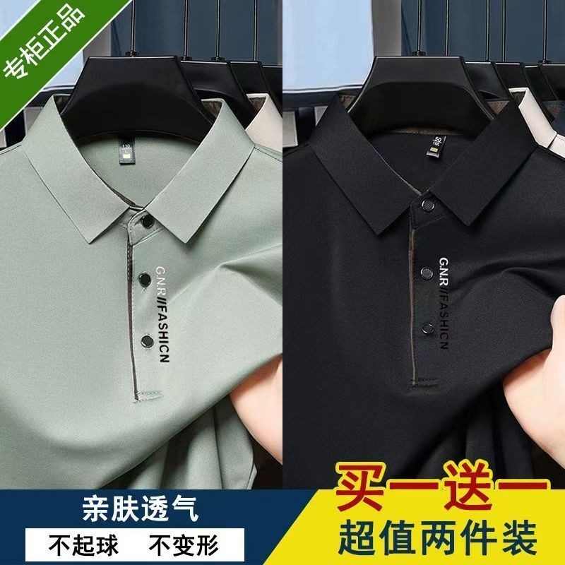 正品夏季新款翻领男士冰丝短袖T恤商务休闲POLO衫纯色上衣男打底