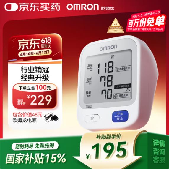 欧姆龙(OMRON)【行业销冠】电子血压计血压仪老人家用测量仪器医用高精准U724J