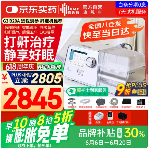 瑞迈特呼吸机治疗睡眠暂停综合鼾症止呼噜低通憋气家医用双水平G3B20A