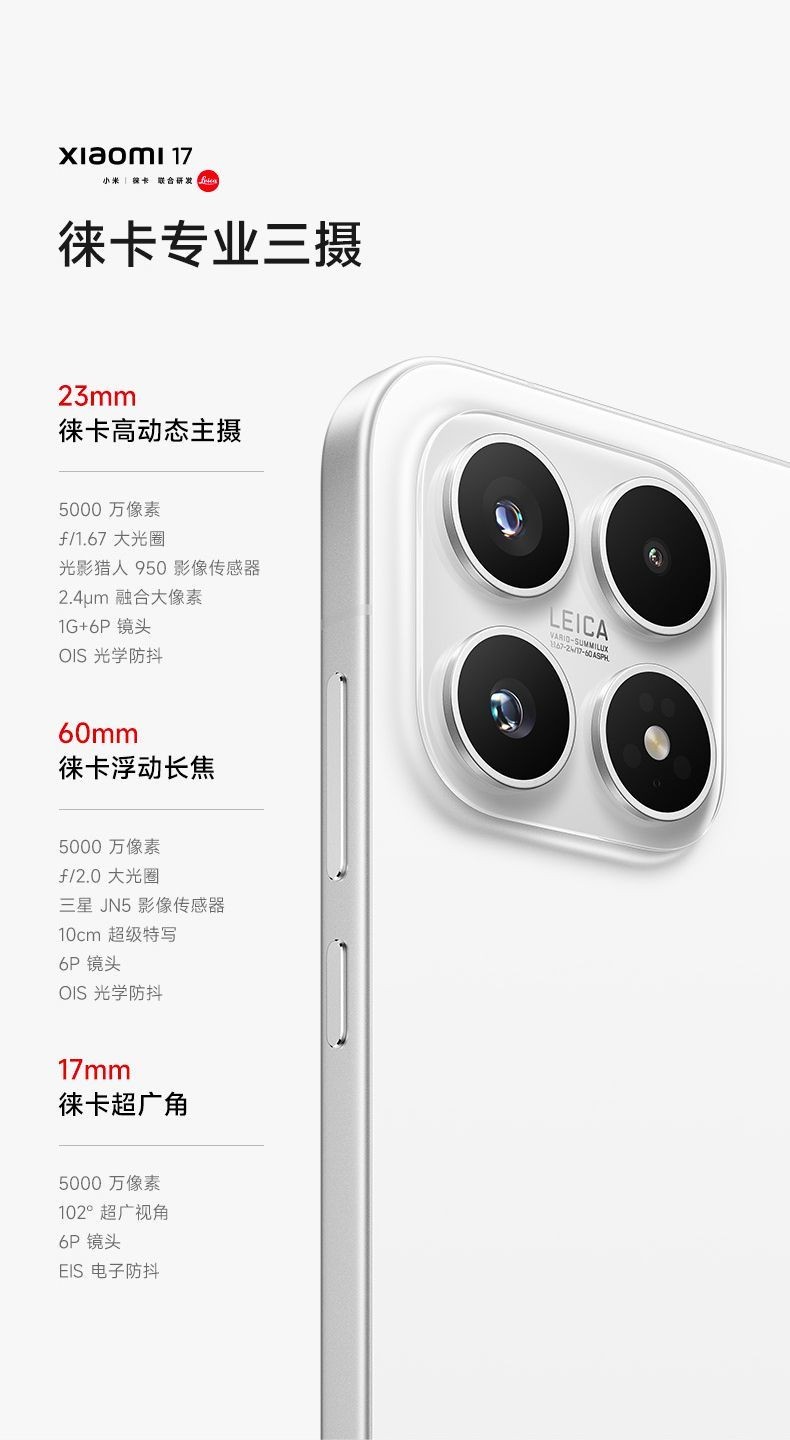 小米(MI)小米 17 第五代 骁龙 8 至尊版 光影猎人 950 7000mAh