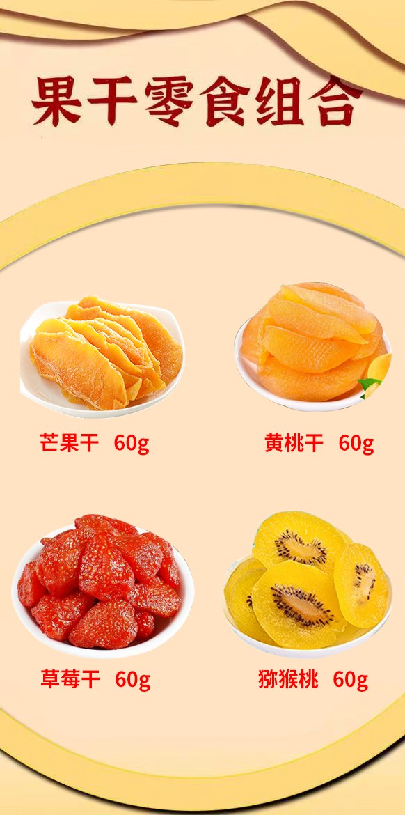 憨豆熊 整箱芒果干猕猴桃干黄桃干网红小吃果干休闲零食批发