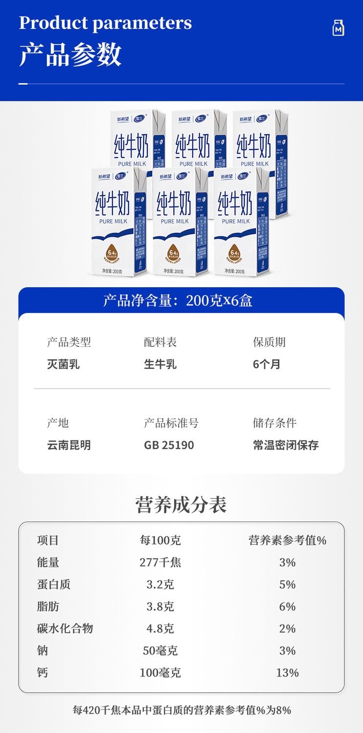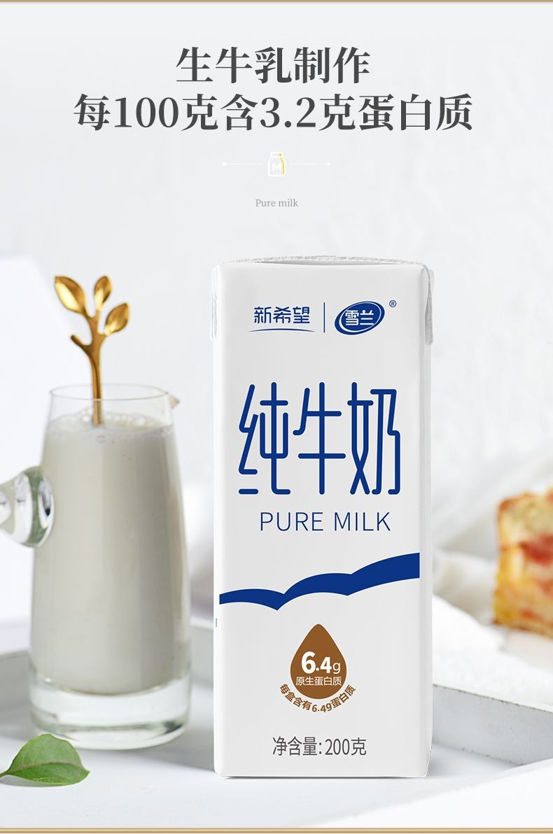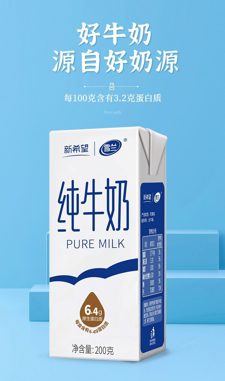 12月新希望雪兰云南高原纯牛奶200g*6盒纯奶体验装