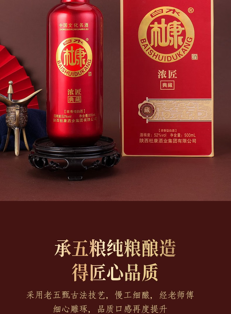 白水杜康52度试饮白酒整箱浓香型纯粮食高粱酒礼盒500ml单瓶酒 52度 500mL 1瓶 单瓶装